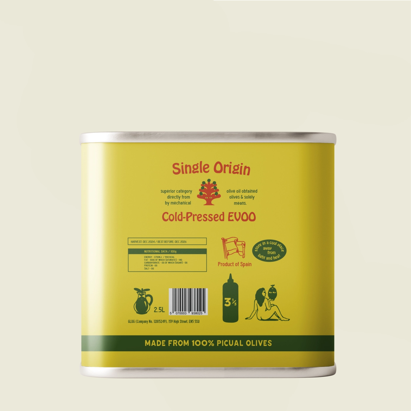 Our 2.5L tins are the perfect choice for devoted, eco-minded olive oil lovers. Generously sized to keep you stocked up on exceptional EVOO, each tin comes with a built-in pull-out spout, making it simple to refill your squeezy bottles 3+ times without the mess. Our Extra Virgin Olive Oil for Cooking is made from Picual olives harvested late in the 24/25 season in Jaen, Spain. The result? A super-fresh EVOO that’s packed with polyphenols and doesn’t break the bank. No blending – just great olive oil made the traditional way. Perfect for every day cooking, from fried eggs to roast veg.