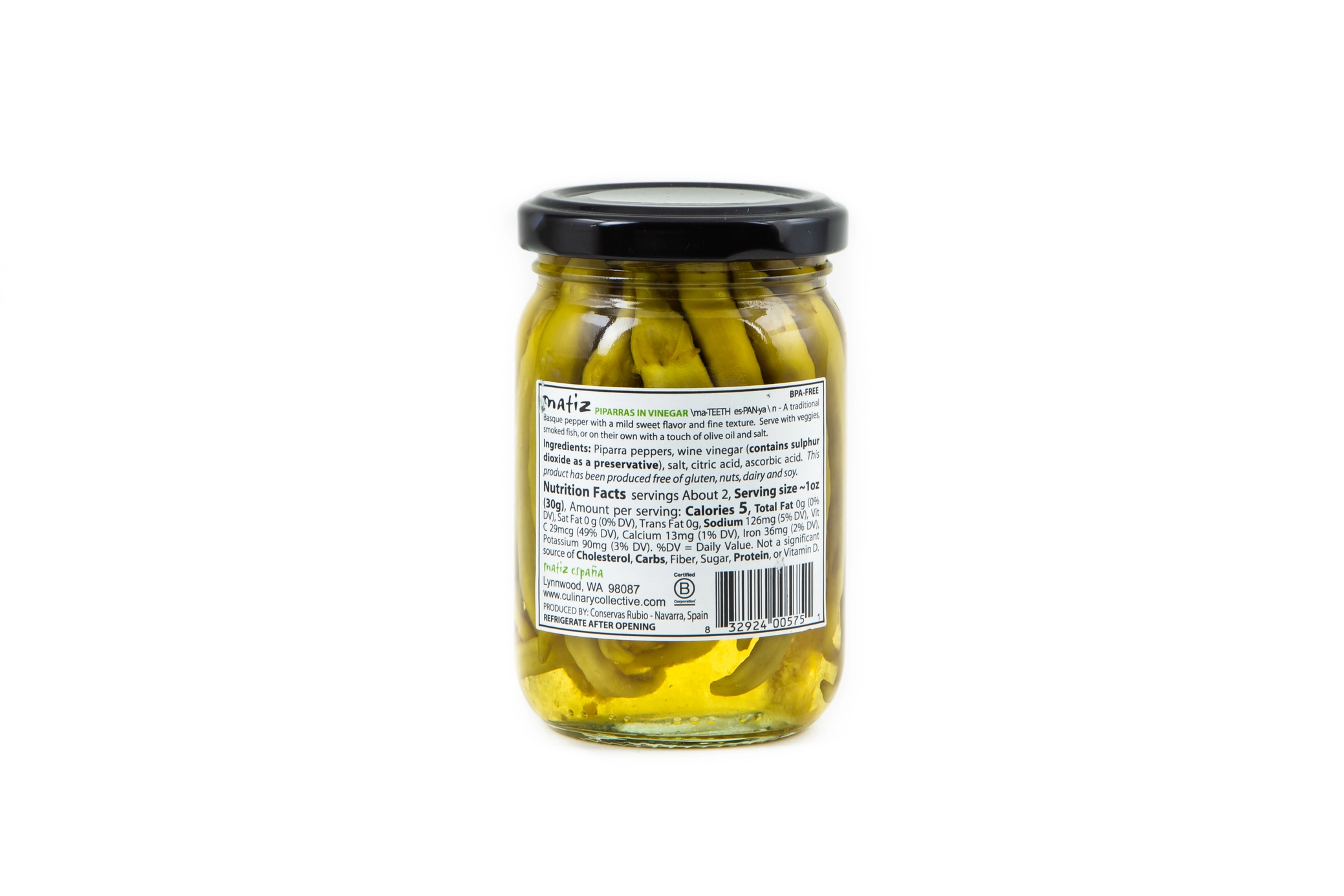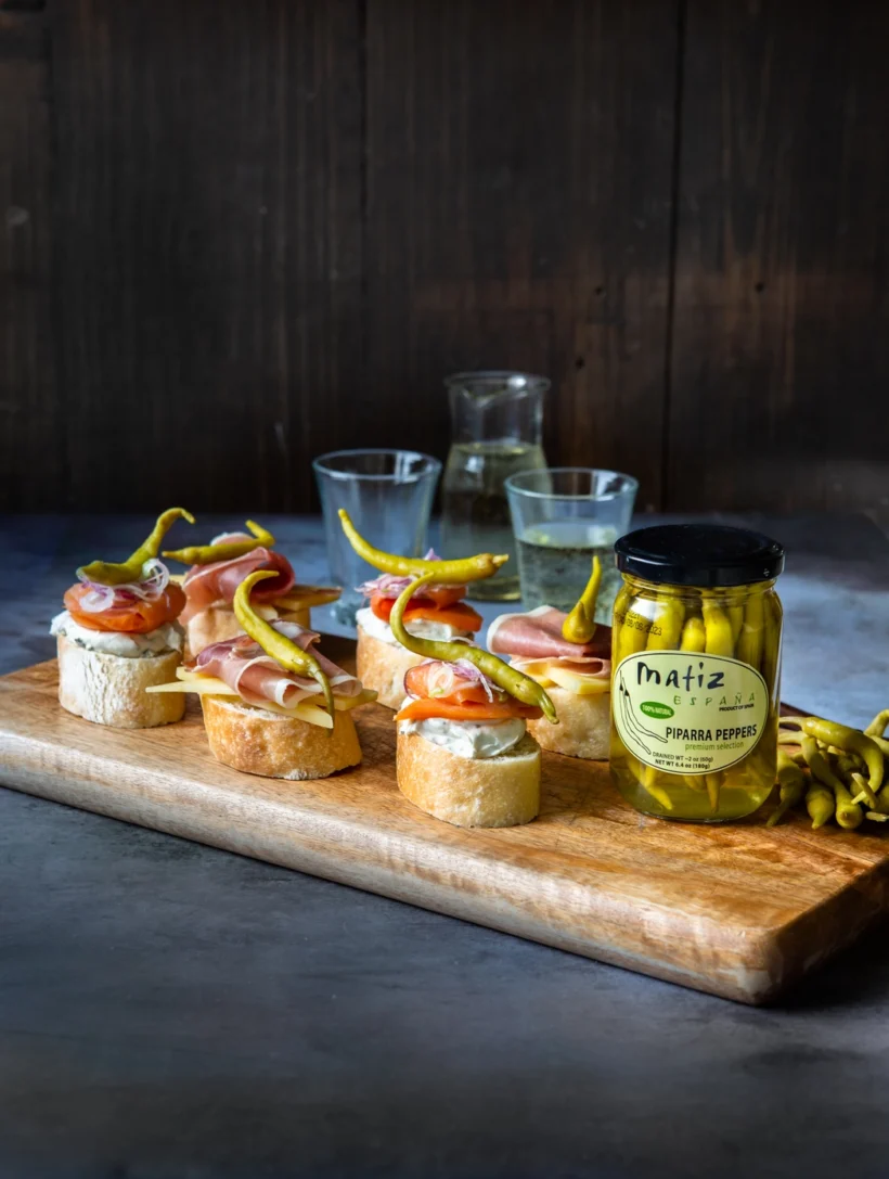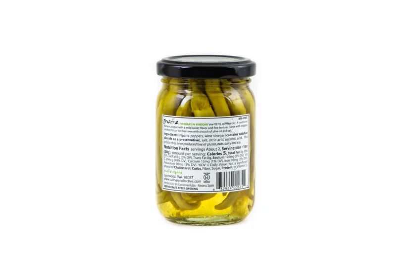 Perfect pickled peppers (also called guindillas) add a subtly spicy, vinegar kick to just about anything! Matiz Piparra Peppers are a traditional long green pepper from the Basque country of Spain. With a mild slightly pickled flavor, they make a wonderful accompaniment to bonita tuna and smoked fish, or try them drizzled with olive oil and salt.