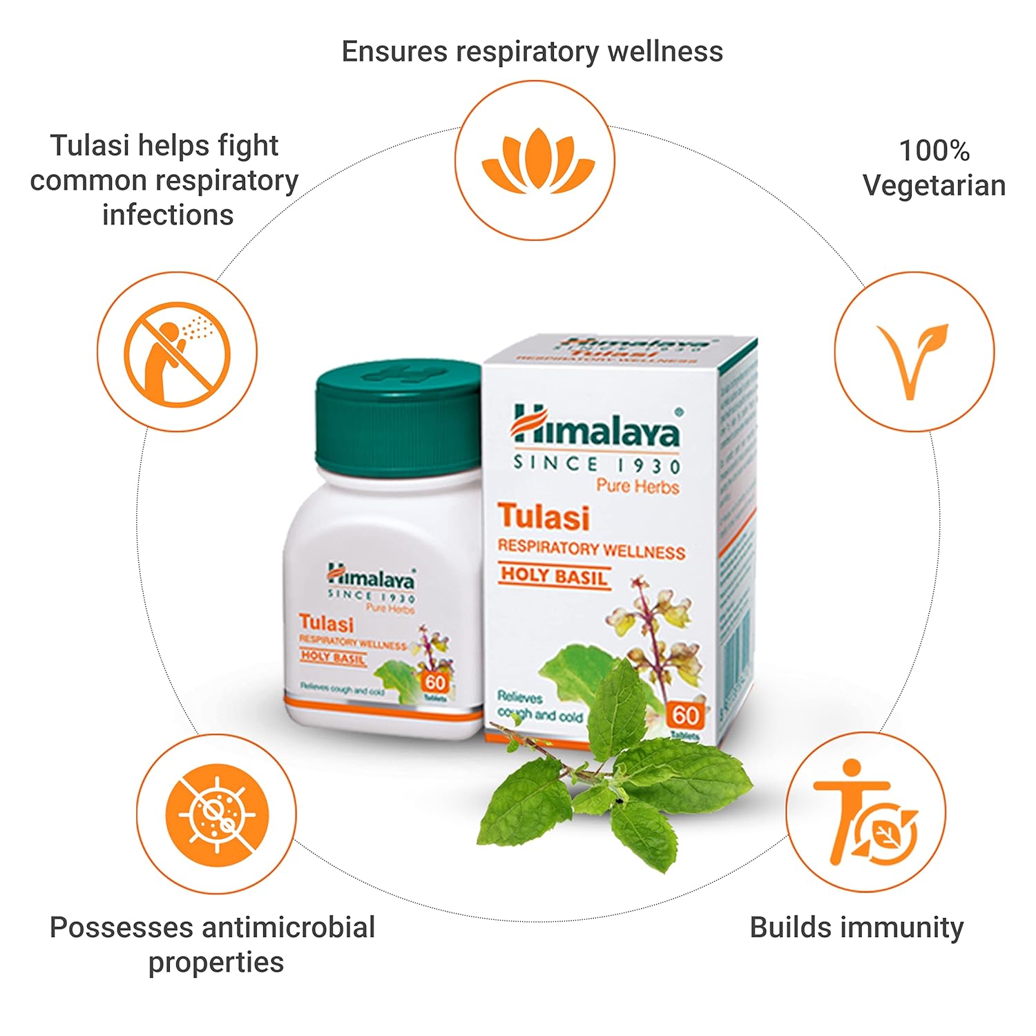 Himalaya Pure Herbs Tulasi Respiratory Wellness | Holy Basil 60 Tablets